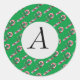 This sticker has a sweet pattern is made up of vintage candy canes. It has classic red and white stripes and it is wrapped with a big green bow. Green background can be customized and you can add your own initials.