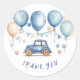 Add a special touch to your baby shower favours with these adorable vintage car thank you stickers! Featuring a charming blue classic car, watercolor balloons, and a sweet "Thank You" message, these stickers are perfect for sealing favour bags, decorating gifts, or adding a personalized touch to your thank you notes.