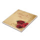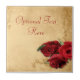 Elegant vintage caramel brown wedding template design featuring decorative corner scrolls on the top and bottom with a photo of three red roses in the lower corner. The background is given a textured grunge application for an antique paper look. This design comes in several ready made backgrounds. This design also comes on many other stationery products to suit all your wedding set needs.