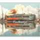 Vintage Caravan Trailer RV with mirror reflection of sky in water to customize, personalize by changing to your name