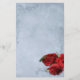 Elegant vintage cascade blue wedding stationery design featuring decorative corner scrolls on the top and bottom with a photo of three red roses in the lower corner. The background is given a textured grunge application for an antique paper look. This design comes in several ready made backgrounds. This design also comes on many other stationery products to suit all your wedding set needs.