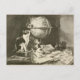 Vintage Cat Illustration, Desk with Books & Papers Postcard