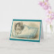 Victorian / Vintage note card. Adorable black and white kitten on a blue and white pillow! Perfect all occasion note card for cat lovers!