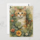 A vintage cat postcard with various plants, flowers, and butterflies.
