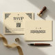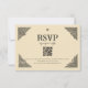 This unique RSVP card showcases a stunning black ornate border featuring peacock motifs, adding a touch of exotic elegance to your wedding stationery. The cream background and detailed illustration create a luxurious feel, perfect for a memorable celebration. The clear 'RSVP' text ensures guests know the purpose of the card, while the space for a QR code and wedding website address facilitates easy online responses. Make your wedding planning journey smooth and stylish with this distinctive design.