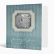 This binder/photo album features a textured, striped blue background, on which a cream, ticket-like frame holds your very own cute wedding or engagement photo. A darker blue ribbon stretches around the binder, bears your names (or text of your choice!) in an amiable script font, and a date in a classic all-caps, engraving-style font. The spine of the binder can contain the couple's names and wedding date (or text of your choice!), and a classic serif monogram below.