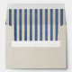 This vintage style, charming design features an aged, textured, and distressed pale cream outside, while the inside is of vertical dusky purple and cream stripes, giving the envelope a fanciful, stylish feel. The back flap has a ticket-like outline framing your name(s) and return address. The front has been left blank for addressing and postage. This envelope was designed for a matching wedding invitation.