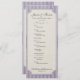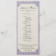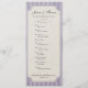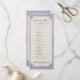 This design features a dusty lilac purple striped background, and a simple, elegant ticket-like cream frame. The text alternates between classic Garamond and script wedding fonts, with an added script flourish for style. The design has been given a distressed, aged feel to complement the vintage design. These wedding programs are classic but not overly formal, exuding a vintage, old-fashioned charm with a contemporary sweetness and style.