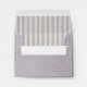 This vintage style, charming design features an aged, textured, and distressed pale lilac purple outside, while the inside is of vertical lilac and cream stripes, giving the envelope a fanciful, stylish feel. The front has a ticket-like outline framing your name(s) and return address so guests can mail the RSVP back to you. This envelope was designed for a matching wedding invitation response card.