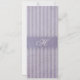 This design features a dusty lilac purple striped background, and a simple, elegant ticket-like cream frame placed over a darker lilac ribbon. The text alternates between classic Garamond and script wedding fonts, with an added script flourish for style in between the wedding date and location. The design has been given a distressed, aged feel to complement the vintage design. A custom monogram initial in cream ties the back of the invitation card into the overall design. These invitations are classic but not overly formal, exuding a vintage, old-fashioned charm with a contemporary sweetness and style.