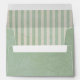 This vintage style, charming design features an aged, textured, and distressed sage green outside, while the inside is of vertical sage green and cream stripes, giving the envelope a fanciful, stylish feel. This envelope was designed for a matching wedding invitation.