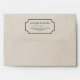 This vintage style, charming design features an aged, textured, and distressed pale cream outside, while the inside is of vertical ivory and cream stripes, giving the envelope a fanciful, stylish feel. The back flap has a ticket-like outline framing your name(s) and return address. The front has been left blank for addressing and postage. This envelope was designed for a matching wedding invitation.
