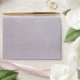 This vintage style, charming design features an aged, textured, and distressed pale lilac purple outside, while the inside is of vertical lilac and cream stripes, giving the envelope a fanciful, stylish feel. The back flap has a ticket-like outline framing your name(s) and return address. The front has been left blank for addressing and postage. This envelope was designed for a matching wedding invitation.