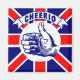 Vintage design featuring the Union Jack, a thumbs up and the old British salutation " Cheerio ".