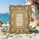 Set the tone for a formal fairytale celebration with this opulent design featuring vintage flourishes and warm neutrals. Perfect for traditional couples.This design features a rich visual composition reminiscent of the Gilded Age. The artwork simulates a rectangular frame composed of intricate scrollwork, carved floral roses, and draped fabric swags, rendered in tones of warm beige and antique gold. At the bottom centre, two symmetrical cherub angels rest among pearl beading details. The typography pairs a traditional serif font with elegant calligraphy script.This is a flat printed image with a faux gold foil and embossed texture effect, not actual raised material or metallic foil.