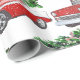 Vintage Chevy with Christmas Tree on top wrapping paper. White background. Red and White Car.
