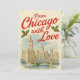 Send cozy holiday vibes with this Vintage Chicago Christmas Card featuring a snowy city scene and the heartfelt message “From Chicago with Love.” Highlighting the beautiful Chicago skyline and festive red and green accents, this charming card is ideal for anyone who wants to share the magic of the Windy City during the most wonderful time of the year.