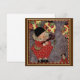 A child (girl or a boy) dressed in a harlequin pierrot clown costume is playing music on a banjo underneath Chinese lanterns at a party. A doll is her audience, sitting on the floor wearing a kimono.