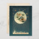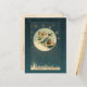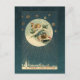 Richly coloured and unique design from a 1910 German Christmas postcard featuring a rosy-cheeked child sledding down a snowy hill on a deep teal starry sky with village in the distance.