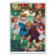 A colourful vintage illustration by Clara M. Burd of a group of five happy boys and girls playing in a yard under a tree festooned with Chinese lanterns. One child is blindfolded and is reaching out to find the other children as they scurry around trying to stay at least one arm's length out of reach. The American artist, Clara M. Burd (1873-1933) was born in New York, and studied art in New York City and later in Paris. She is best known for her illustrations for children’s books, but she also illustrated for magazine covers, designed stained glass and murals for churches, and painted children’s portraits and scenes from historical periods. This card is blank inside for your own message.