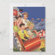 Vintage illustration children image with boys and girls on a roller coaster having fun at the amusement park. The kids are smiling holding balloons and even the family pet dog is enjoying the ride!