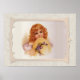 Victorian child with pretty flower accented hat. Sweet face and curly auburn hair. Background is a soft ivory damask. Set of 12 vintage children illustrations by Frances Brundage. A delightful vintage collection.