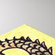The dragon is highly detailed and depicted in a powerful, coiled, and sinuous pose, moving vigorously. It has dark brown/black scales, claws, and a fierce, open-mouthed expression showing its teeth and tongue. The background is a bright, solid golden yellow color with a slightly muted, antique look, enhancing the vintage aesthetic of the artwork. (images are either public domain, created by me, or licensed for use)