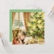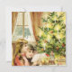 Custom invitation/announcement with vintage graphic illustration . Children are standing and reading by a decorated Christmas tree .. See matching postage