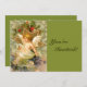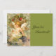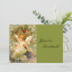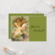 Personalized Christmas angel invitations-Vintage, classic Christmas angel design- A curly haired blonde angel is wrapped in fragile golden fabric. She is surrounded by purple and blue flowers and above her are holly berries and leaves. Behind her is a gold star. "You're Invited" is printed in matching green letters on the front of these angel invitations or announcements with coordinating green. Enter your own personal information on the other side. Change the text colour, font style, or wording if you like. The current wording is for a Christmas party invitation.