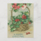 Vintage Christmas Basket with Holly Holiday Postcard