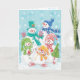 Facile de customiser la carte de Noël, il suffit d'ajouter vos noms! Pour modifier la police ou la couleur de l'arrière - plan, cliquez sur "customiser". Illustration vintage Design de Noël mettant en vedette une famille de bonhomme de neige heureuse avec maman, papa et les enfants des neiges tenant des cadeaux de Noël et un arbre de Noël. Il neige avec de grosses flocons de neige qui tombent. Leurs foulards et leurs casquettes sont tous de couleurs différentes, rouge, jaune, vert et blues.