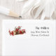 Un étiquette de retour amusant et fantaisiste pour vos enveloppes de cartes de Noël. Image vintage des elfes qui roulent sur un log sur un arrière - plan blanc avec nom et adresse personnalisable.