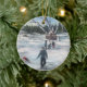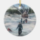 First SnowFall Ceramic Ornament., Acrylic Painting, Children Playing In The Snow, Winter Scene My Children POSED For Many YEARS ago, Making Snowmen, Pulling Sled, The Tree House In The Background.