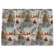 This wrapping paper features a repeating, seamless pattern of a sparkly, vintage winter scene. The design depicts a snowy landscape with rolling hills, evergreen trees dusted with snow, and a quaint red church with a steeple nestled in the background. The foreground is dominated by large, frosty tree branches, adding a sense of depth and texture. The overall effect is charming and traditional, reminiscent of a classic Christmas card, with a subtle sparkle to enhance the festive, wintry feeling.