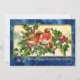 Vintage Christmas Greeting Birds Holly Faux Gold Card