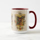 This early 1900's Christmas Greeting is full of all the images of what people would do during the holidays: sit by the fireplace together, or play in the snow, go skiing, and visit with friends. It's a colourful holiday mug to brighten any home and add to your Christmas decor.