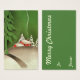 Vintage illustration Christmas holiday image featuring a cute house in a snow covered landscape with a fire burning in the fireplace and smoke coming out of the chimney.