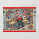 Vintage Christmas card, featuring Santa Claus in his workshop.