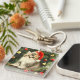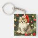 Keychain featuring a vintage Christmas kitten! This adorable kitty wears a Santa hat and sits in a Christmas tree decorated with ornaments. A wonderful gift for the Christmas season and cat lovers!