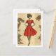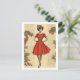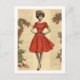 Send festive greetings with timeless charm using this vintage-inspired Christmas postcard featuring a classic mid-century illustration of an elegant woman in a vibrant red dress. Surrounded by holly branches and bright berries on an antique book-page background, this design blends retro fashion with nostalgic holiday warmth. Perfect for Christmas mailings, holiday party invitations, gift enclosures, or collectors who adore vintage ephemera and retro style. A stylish and heartfelt way to share holiday cheer.