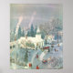 Vintage Christmas, People Going to Church in Snow Poster