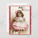 This is a delightful vintage postcard of a sweet little girl in a pink dress. She has a pink bow in her hair and is cradling her pretty doll in her arms. In front of her on the floor is a wrapped Christmas gift. The postcard read: "A Merry Christmas". A gorgeous old Christmas postcard!