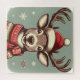This design shows a pretty reindeer with a Christmas hat and a two-color scarf. The reindeer has big horns and a malicious smile. The bottom is decorated with snowflakes. This vintage design is ideal for celebrating winter and Christmas magic.