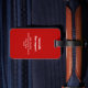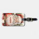 A luggage tag with a cute vintage style watercolor image. Santa Claus in his red suit with jolly cheeks and a smiling face. Surrounded by pine and holly.