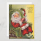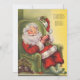 Retro Vintage Jolly Christmas Santa Sleeps In Chair Holiday Card.