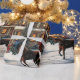 Vintage Christmas snowy landscape with horse drawn sleigh ride