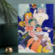 Vintage winter scene of holiday singers