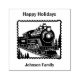Charming Vintage Christmas Stamp featuring a Christmas steam train and pine trees. Santa's North Pole Train? The two text boxes are editable or clear if you want to leave blank.