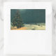 Vintage illustration Victorian Merry Christmas holiday design featuring a snowy landscape. A snowscape with a Christmas tree decorated with bright lights on a winter night with a starry night sky and snow on the ground. Happy Holidays and Season's Greetings!