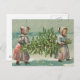 This is a vintage postcard illustration of some kids cutting down a christmas tree.